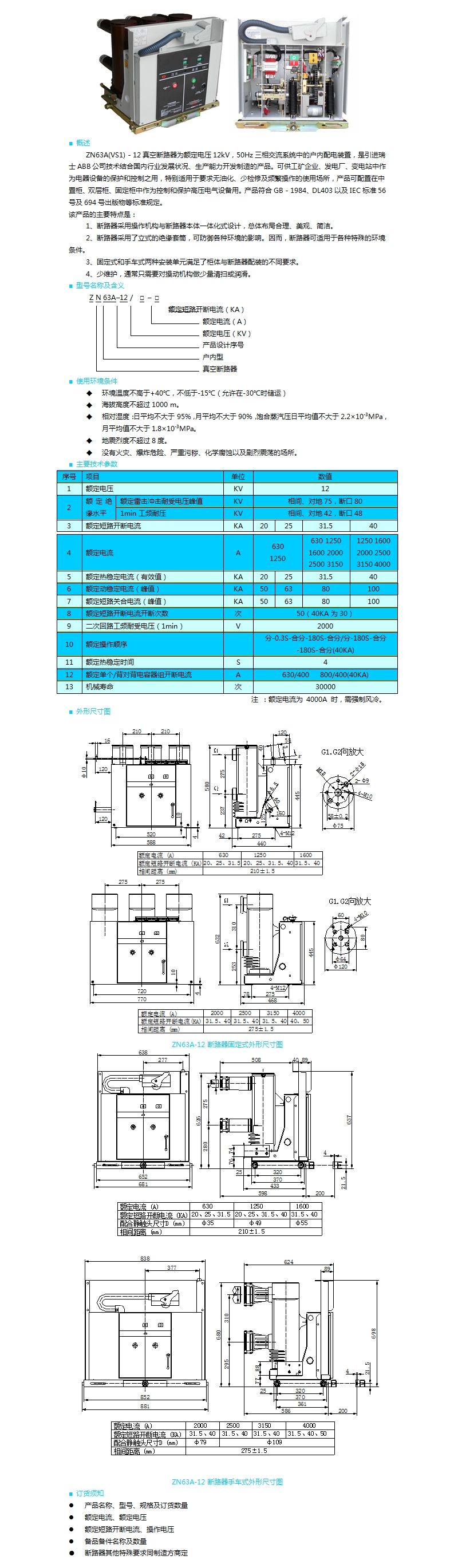 | ZN63A(VS1)-12型戶內(nèi)高壓真空斷路器 | |