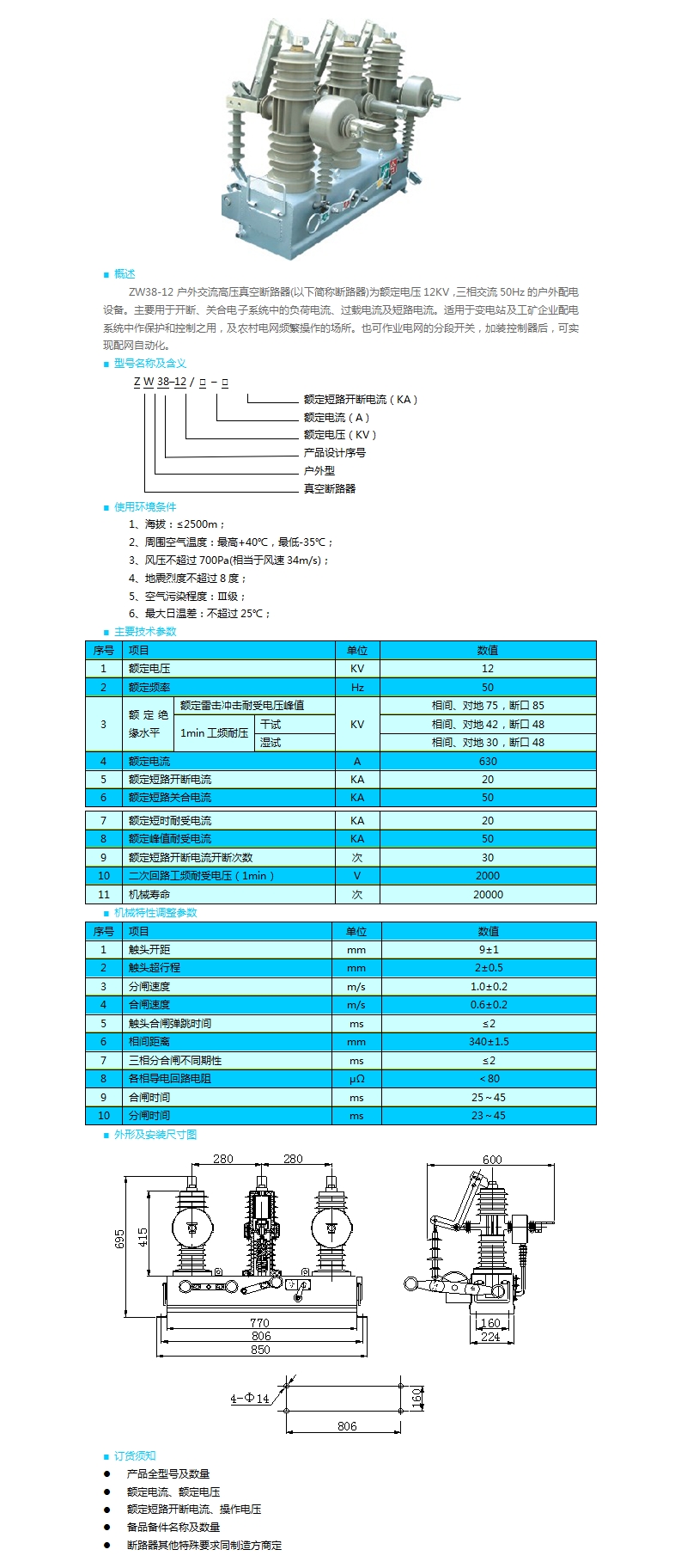 | ZW38-12型戶外交流高壓真空斷路器 | |